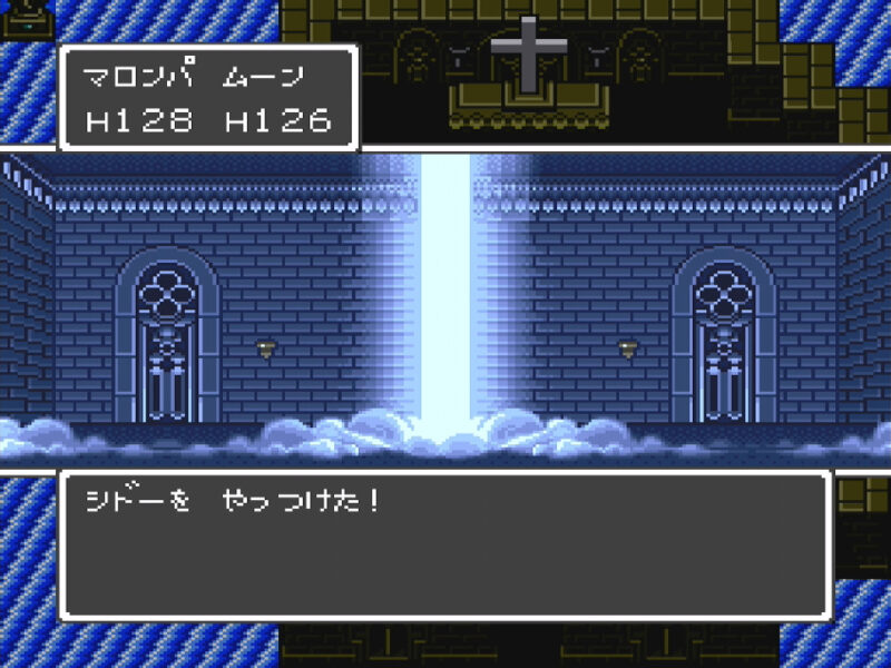 ハーゴン以外は「ひかりのつるぎ」でマヌーサ状態にした上で、ザラキを使って倒しましたが、この「マヌーサザラキ」の裏技を使用しなくても光の剣によるマヌーサやスクルトで身を固めれば十分倒せます。